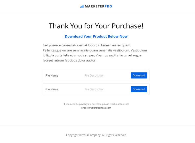 If you need help with your purchase please reach out to us at: orders@yourbusiness.com